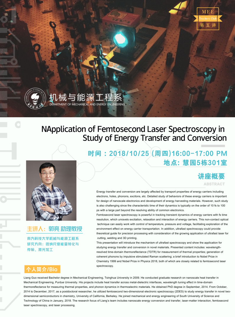 Application of Femtosecond Laser Spectroscopy in Study of Energy Transfer and Conversion