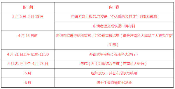 哈工大-南科大联培博士招生实施“申请-考核”制,通过材料审核、外语水平考核、综合面试考核最终确认录取结果。